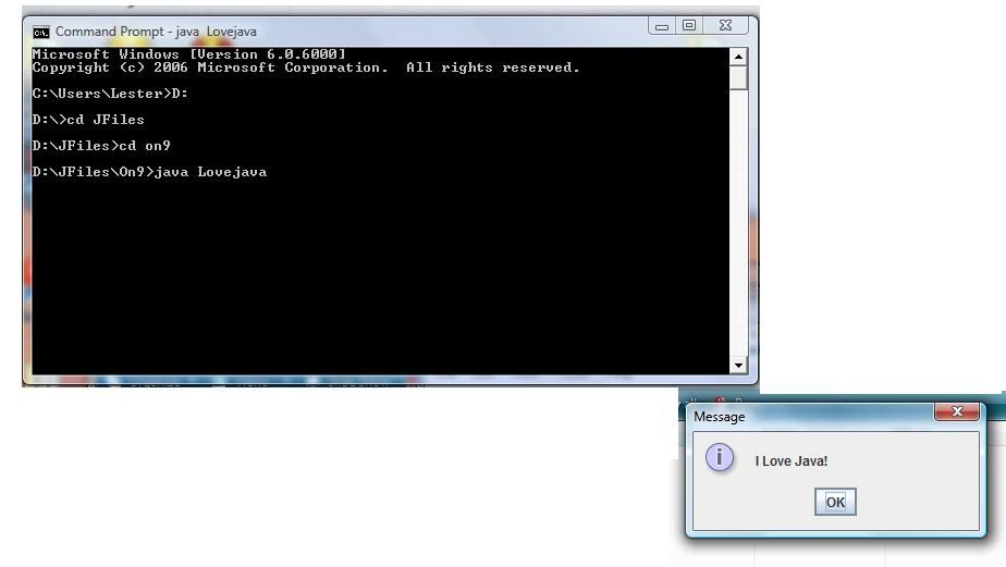 JOptionPane.showMessageDialog (null, "I Love Java!");